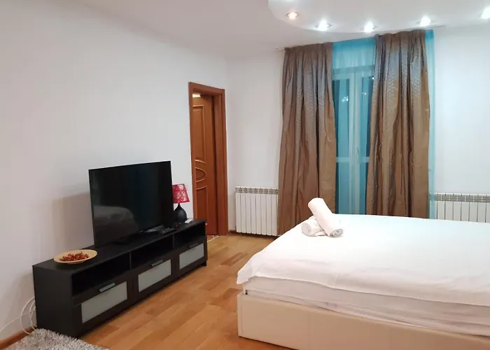 Este apartamento de 68 m² se sitúa a unos 15 minutos a pie del centro de Bucarest. El Open Space Apartment National Arena Monza está situado a unos 6 km del Palacio del Parlamento.